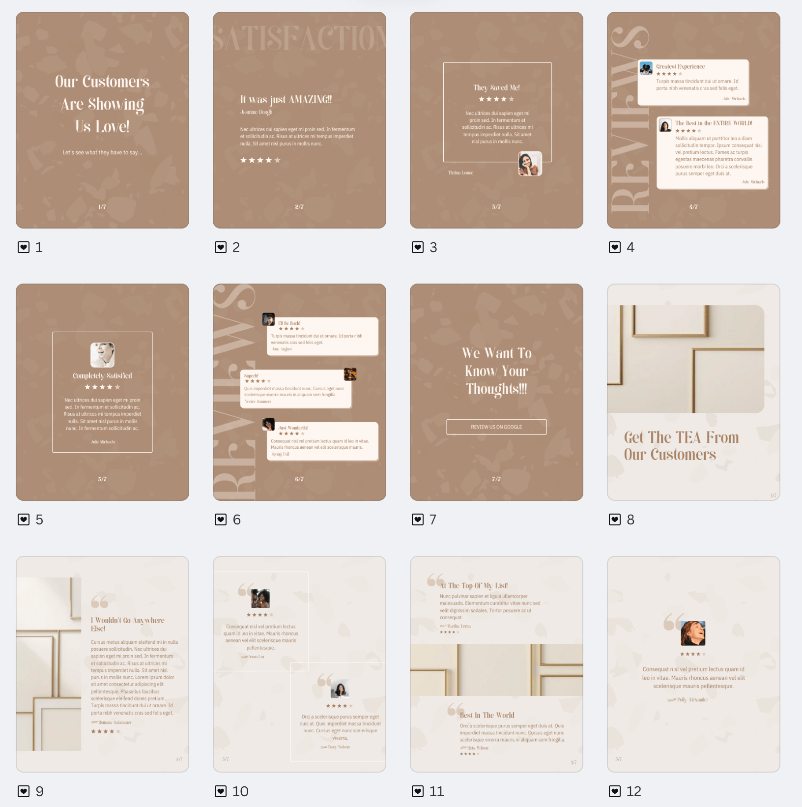 Client Love Carousel Canva Template is a set of 14 customizable slides designed to help you beautifully showcase client testimonials and feedback. With two coordinated 7-page carousel sets, these templates make it easy to share real results, highlight meaningful quotes, and build trust with your audience in a clean, professional layout.